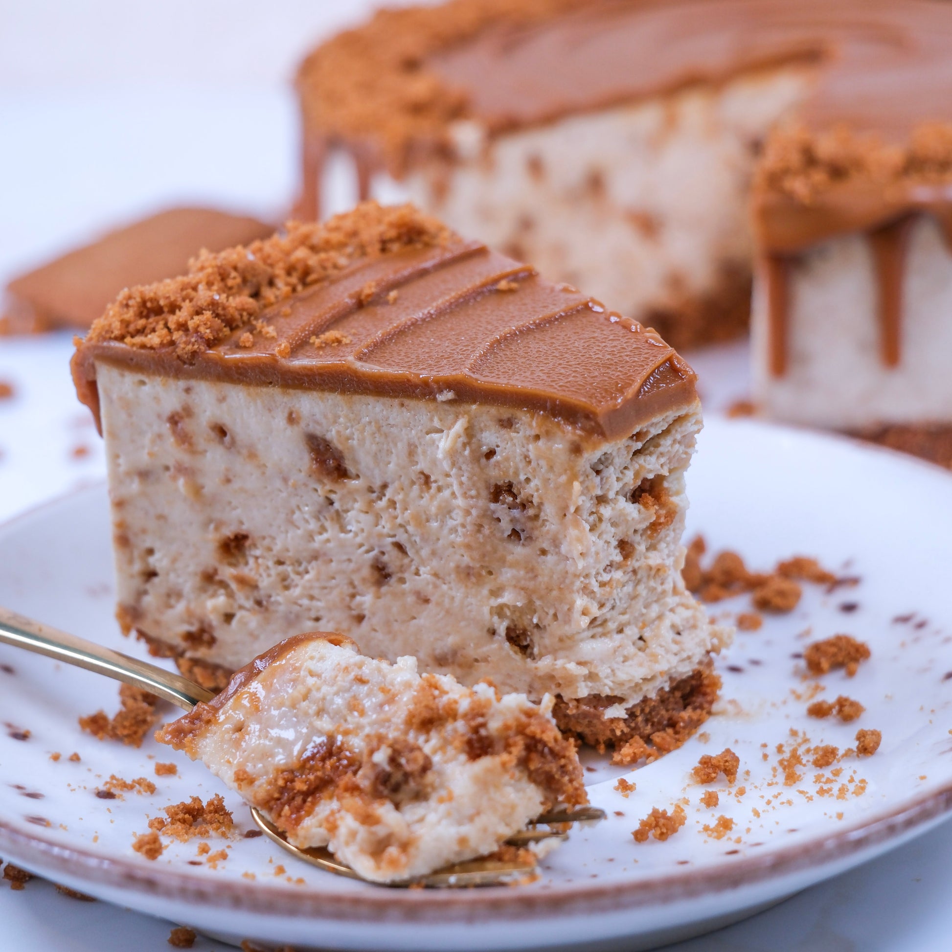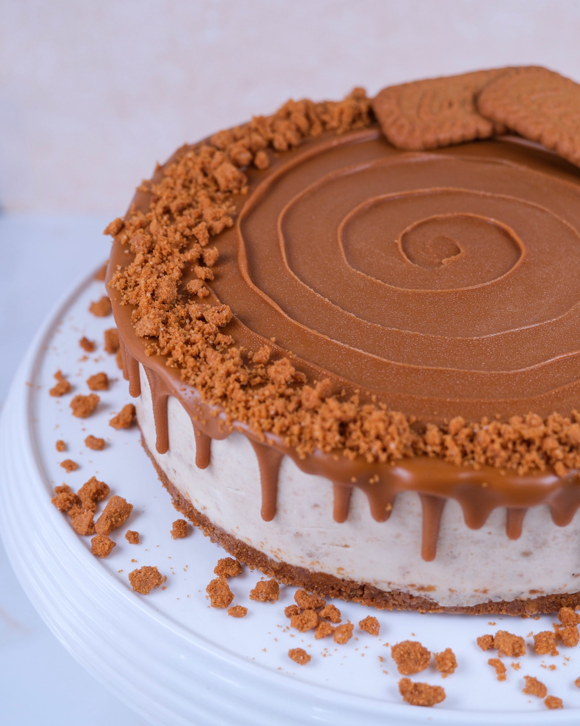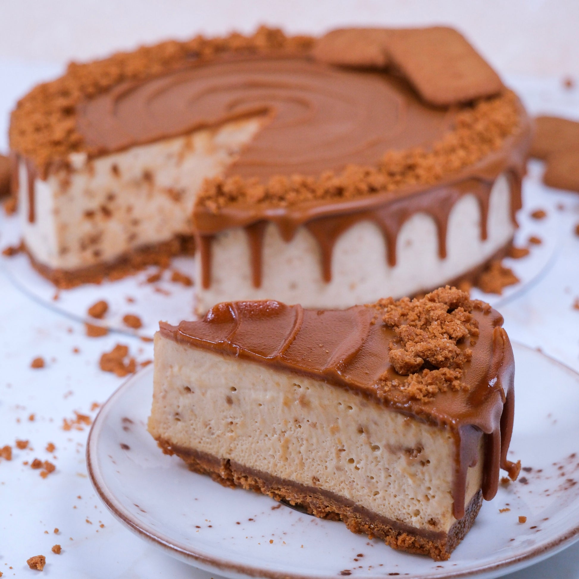 The velvety cream cheese, combined with Lotus Biscoff biscuit crumbs and Lotus Biscoff spread, featuring notes of cinnamon and brown sugar, rests on a Lotus Biscoff crumb base. It is then covered with a rich and smooth layer of Lotus Biscoff spread. Non-baked, no added additives or preservatives.